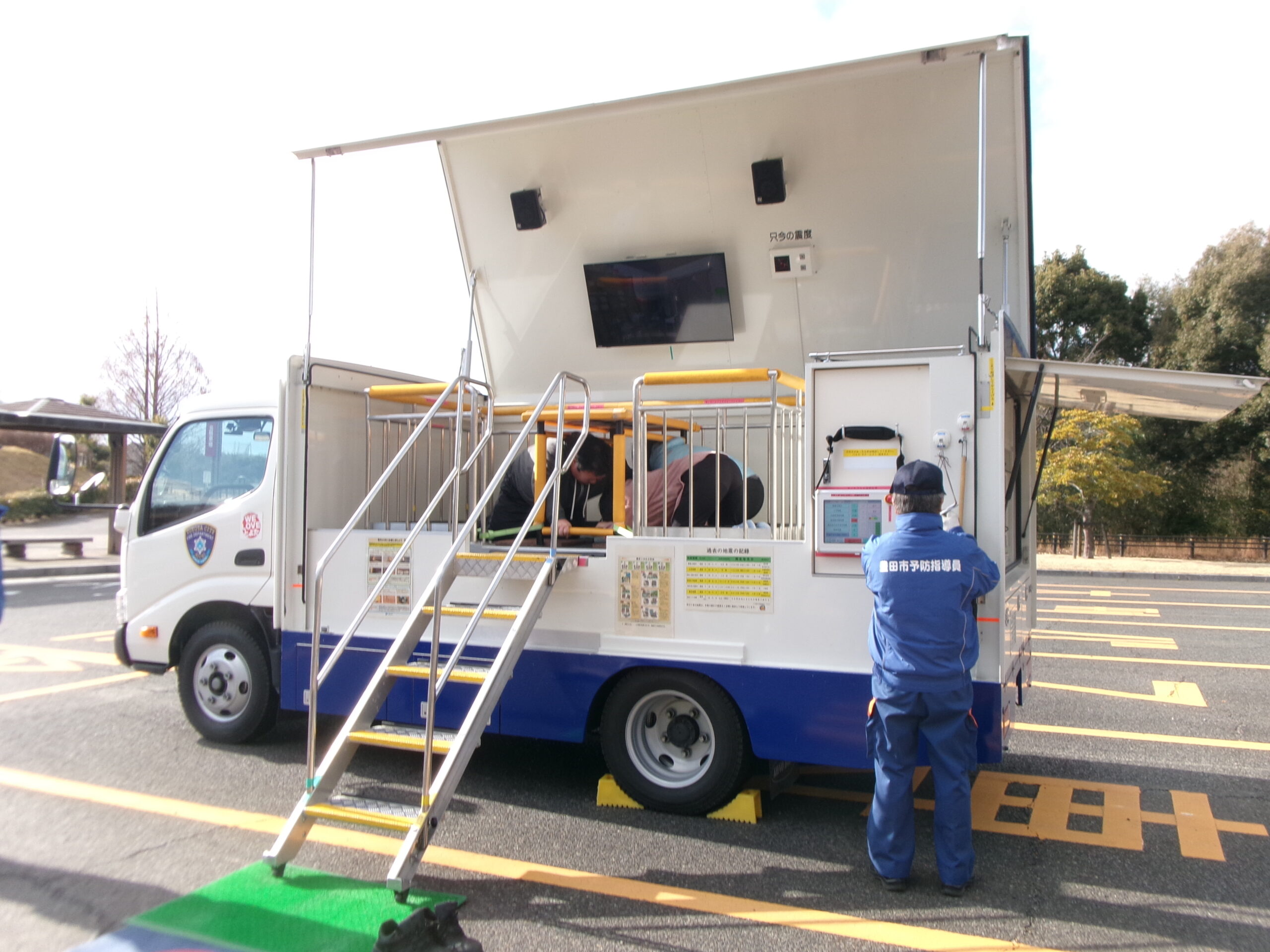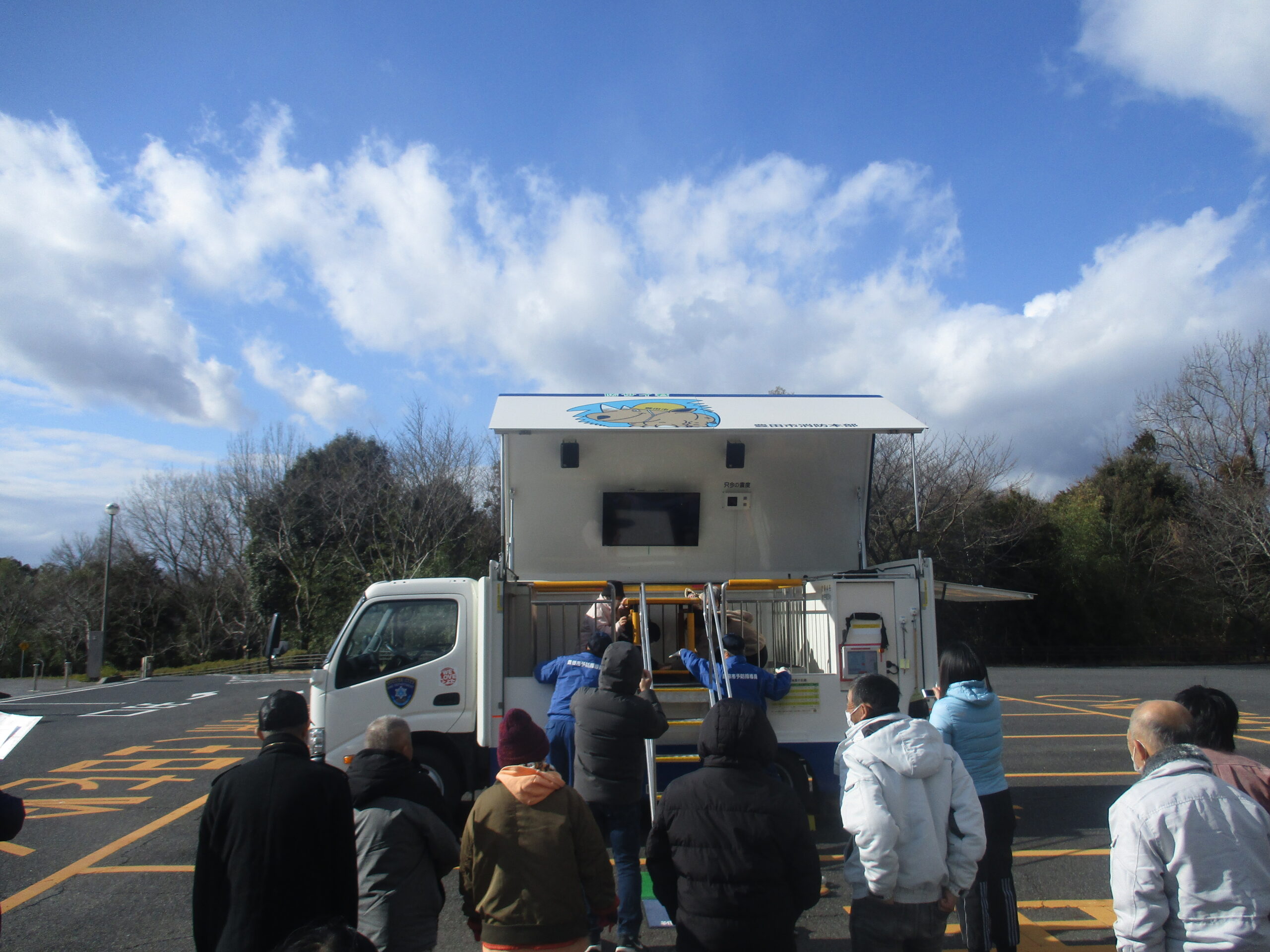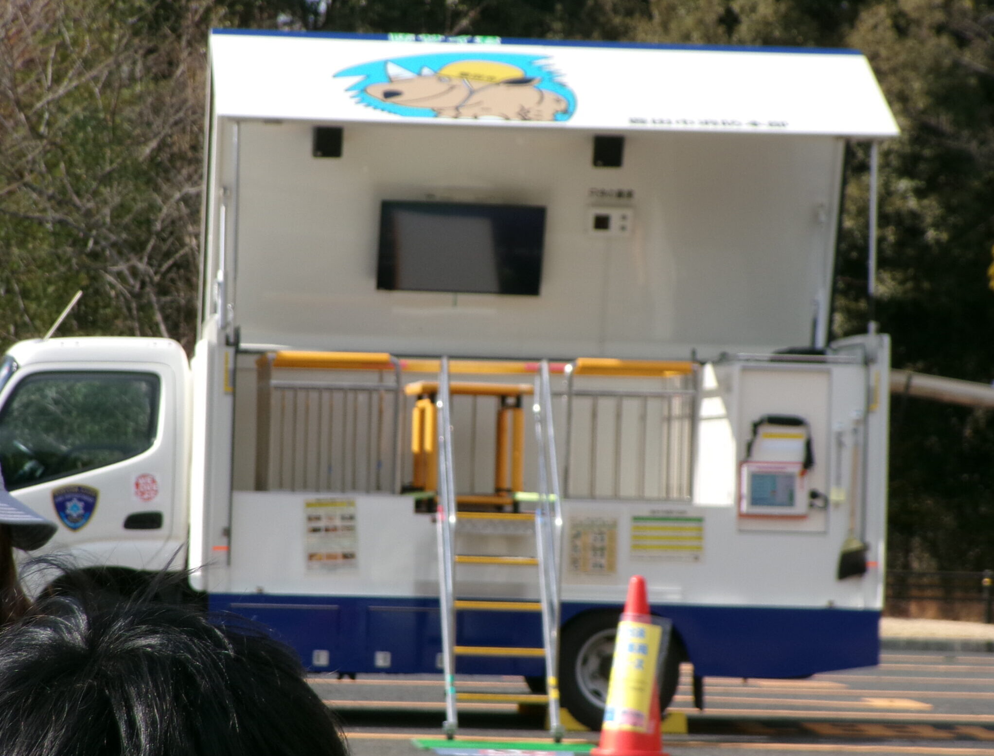 防サイ君とは前後、上下、左右に振動を起こす装置が内蔵されている、震度7までの地震が体験できる地震体験車です。