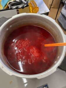 鍋でグツグツと煮て色を付けます🐑