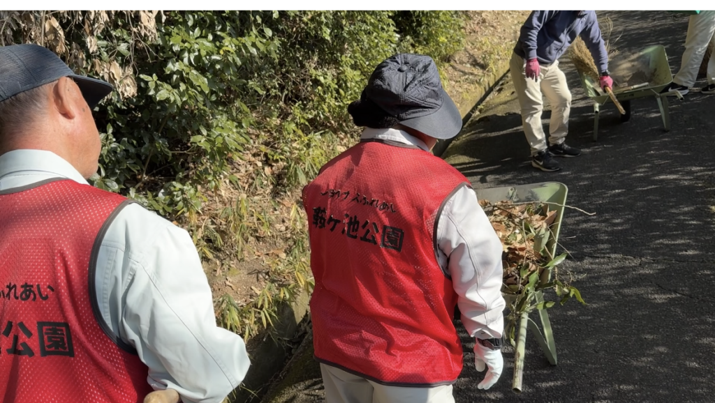 さかえの西山公園の利用者さん3人が、鞍ヶ池の作業を見学に行きました。
