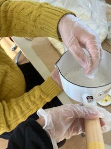 利用者さんは材料の計量をしたり、鍋をかき混ぜたり✨