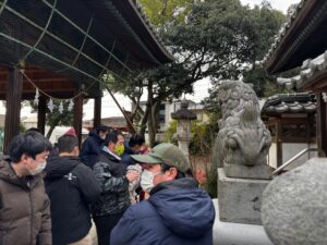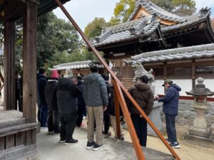 神社では、二礼二拍手一礼をみんなで合わせて行いました。