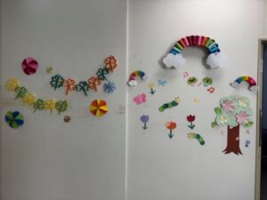 今日の午後に飾りを壁につけてくれて、早速利用者さんからは「かわいい!」「いいじゃん
