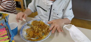 利用者さんも「サラダ美味しい!」と舌鼓を打っていました。